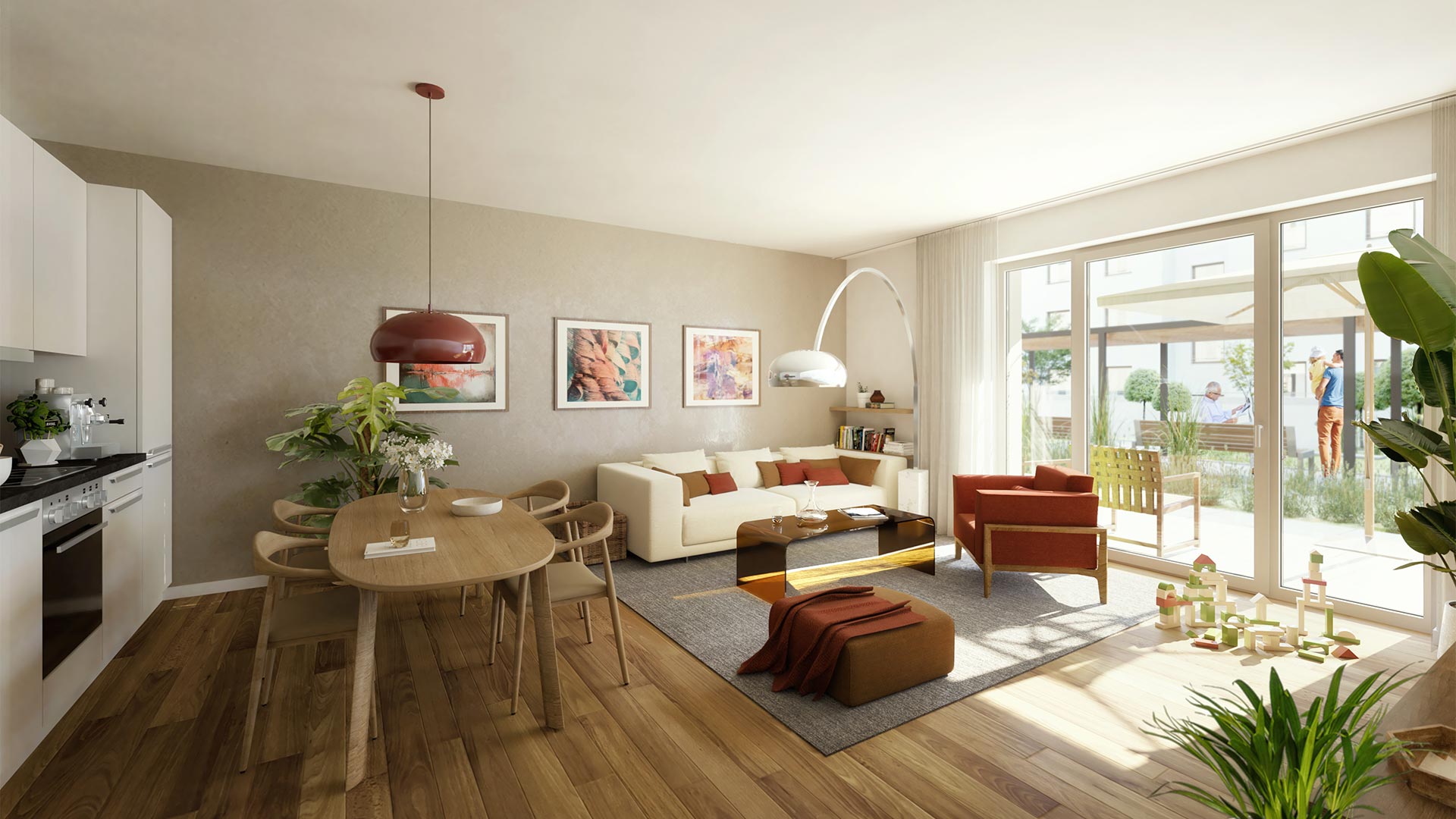 Das Projekt bietet vielfältige Raumkonzepte von kompakten 1-Zimmer-Apartments bis zu großzügigen 5-Zimmer-Wohnungen für Familien. Alle Grundrisse sind clever geschnitten und durchdacht geplant, um sich flexibel an verschiedene Lebenssituationen anzupassen. Die offenen Wohnbereiche mit Zugang zu Balkon, Loggia oder Terrasse schaffen ein modernes Wohngefühl.